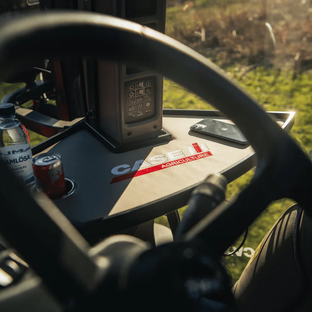 When you spend a lot of time in your tractor, you also deserve the best equipment. With CabTable™, you not only get extra space for your lunchbox, phone, and work tools, but also the convenience of charging your devices directly from the table.